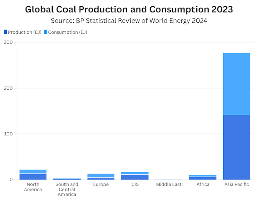 | Region | Production (exajoules*) | Consumption (exajoules) |