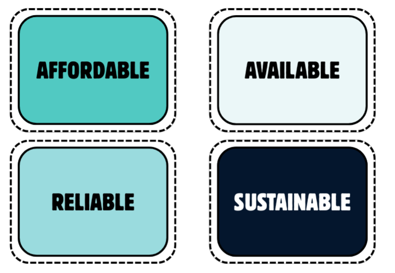 - One set of Pillar Cards per group (Affordable, Available, Reliable, Sustainable)