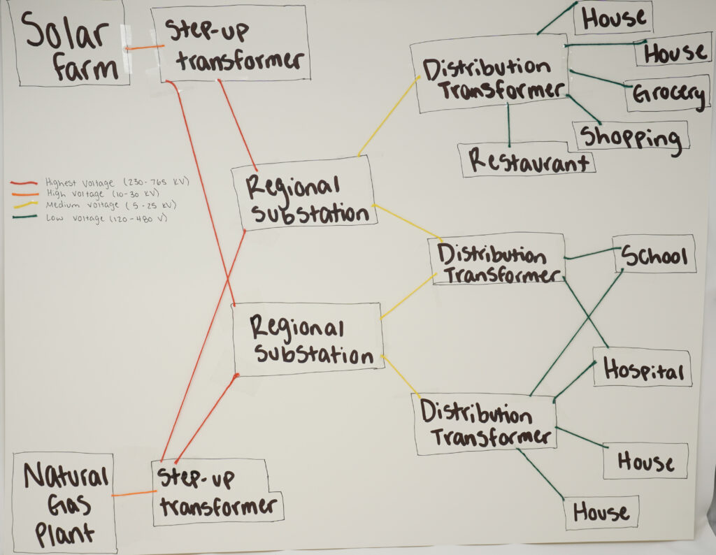 - Illustrate how voltage changes as electricity moves through the grid.