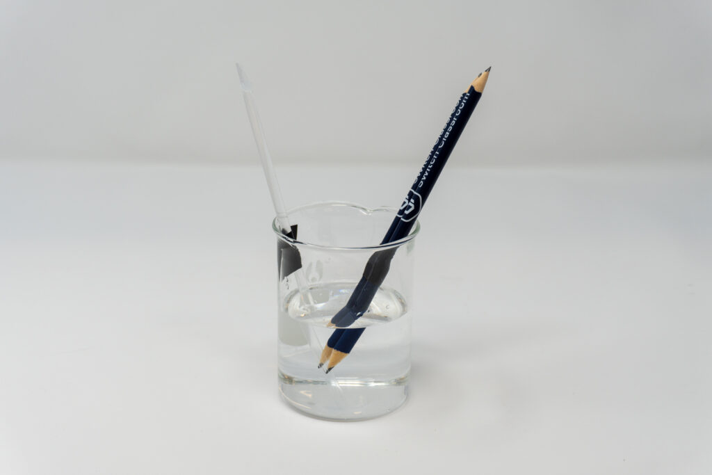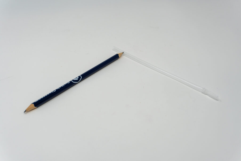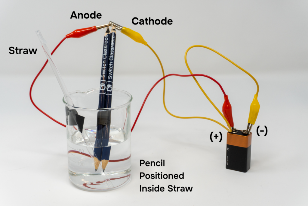 Note: It’s important to make sure the whole graphite section of the pencil is snug inside the straw, or else gas bubbles will escape the straw.