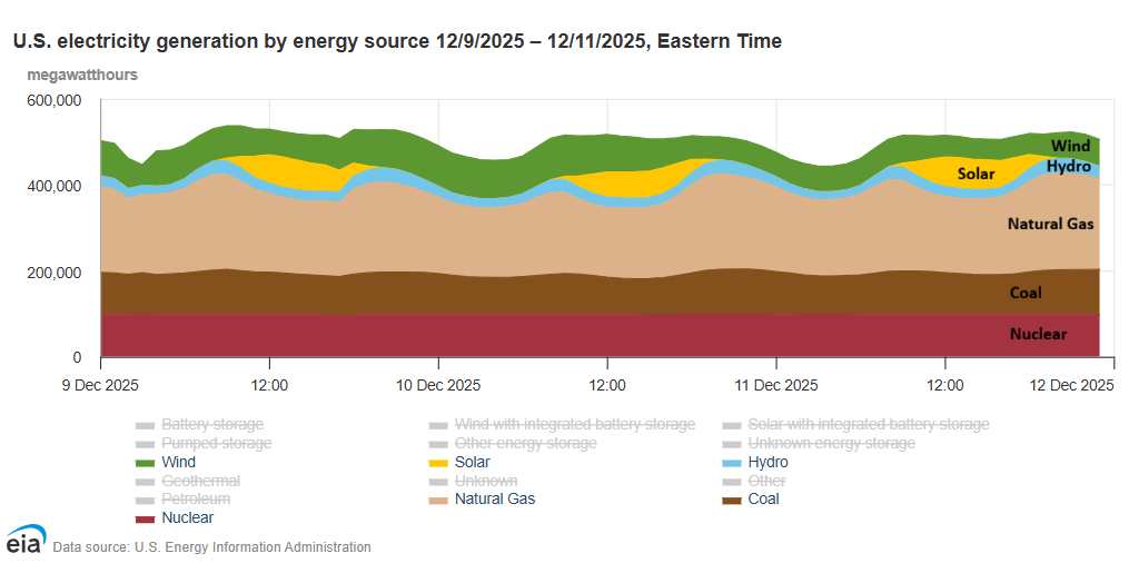 Question 1: Greatest variability: Solar (large daily swings; zero at night); Wind (changes with weather partners and wind speed); Solar and wind depend on weather and time of day, so their output naturally fluctuates. Medium variability: Natural gas and Hydro (rises and falls to match changing demand). Natural gas plants can ramp up and down quickly, making them “flexible” and well-suited to fill gaps. Hydro is dispatchable to a degree; operators can adjust water flow through turbines, but it is still constrained by limits like river flow and reservoir rates. Most constant (steady baseline generation): Nuclear and Coal; Nuclear and coal plants are designed to run continuously at stable levels. They operate best at steady output and are not typically adjusted hour to hour.
