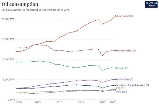| Region | 2023 Oil Consumption (Terawatt-Hour**) |